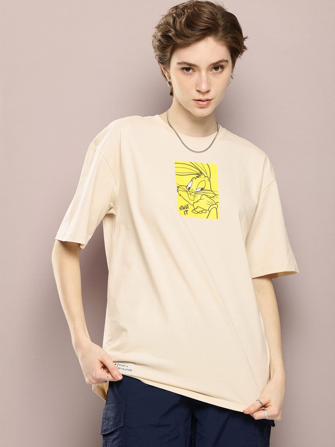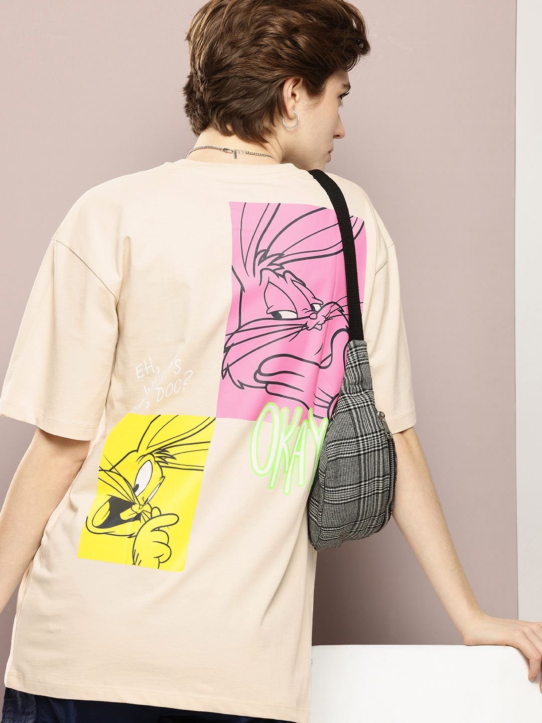 Kook N Keech Looney Tunes Printed Drop-Shoulder Sleeves Pure Cotton Oversized T-shirt