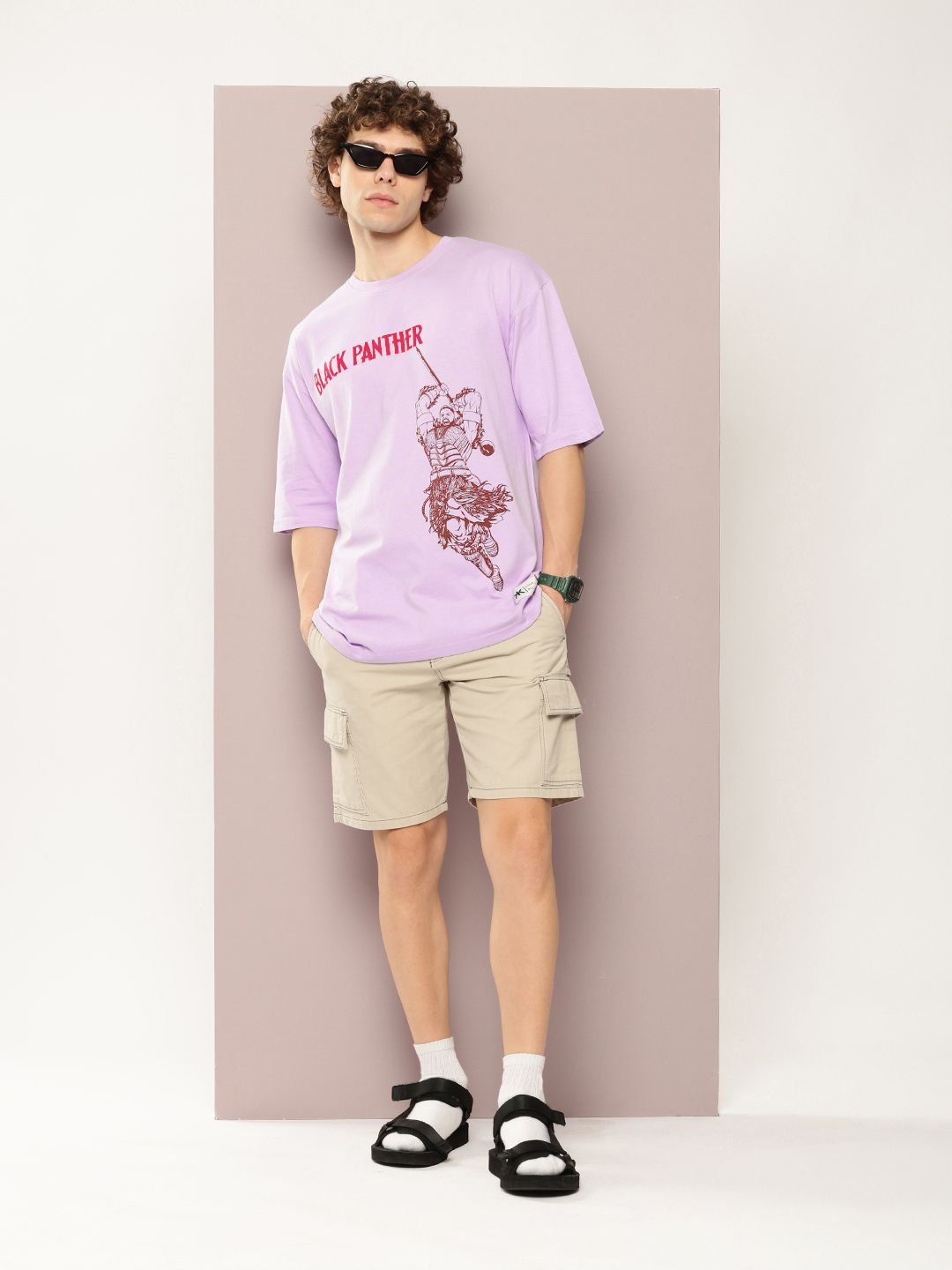 Kook N Keech Marvel Men Black Panther Printed Oversized Pure Cotton T-shirt