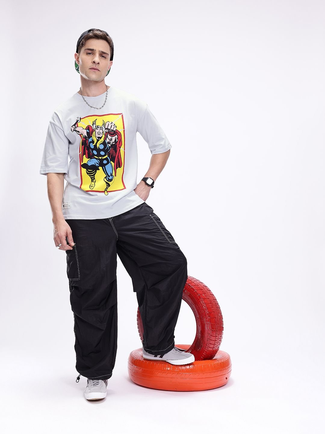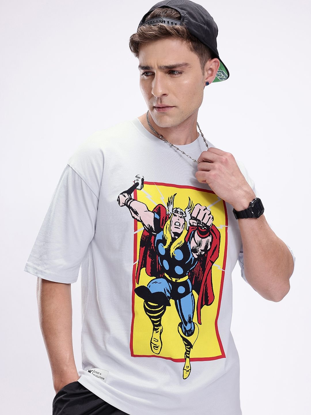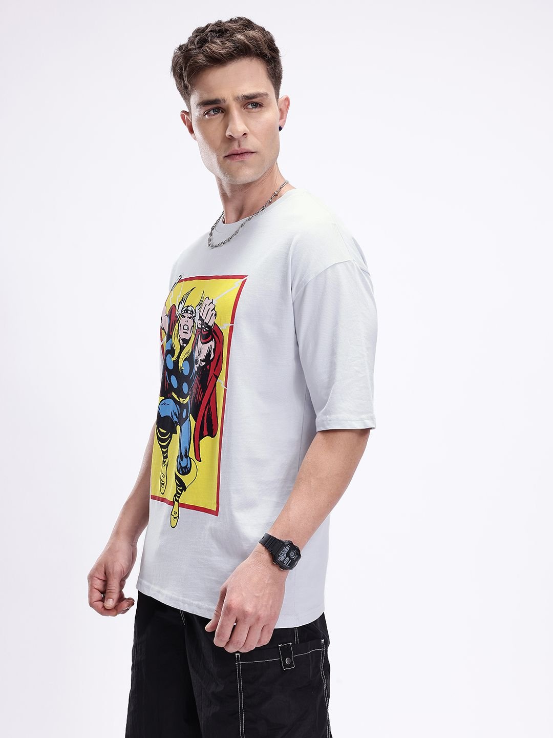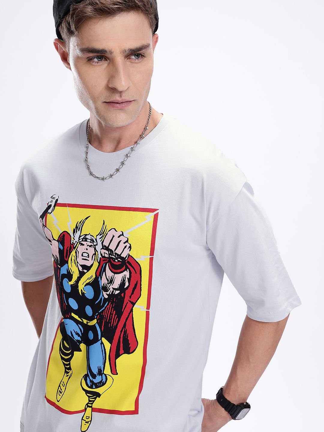 Kook N Keech Marvel Thor Printed Drop-Shoulder Sleeves Pure Cotton Oversized T-shirt