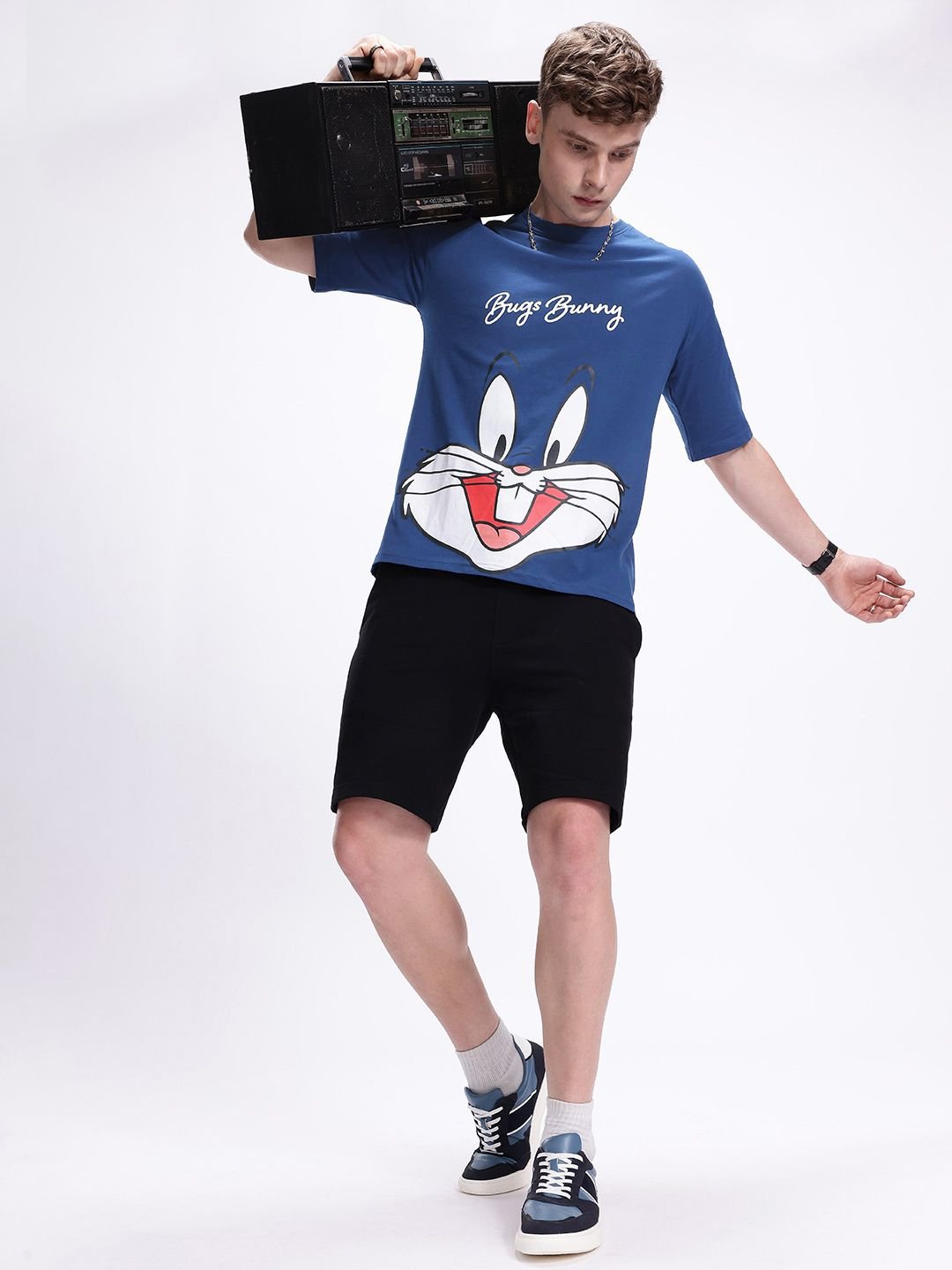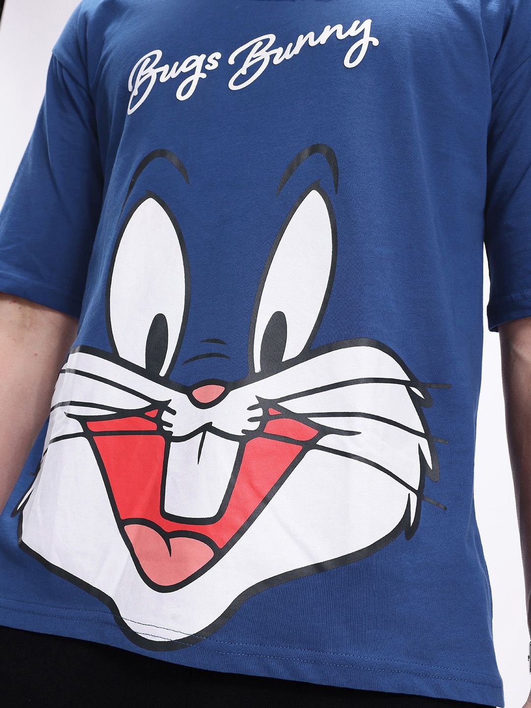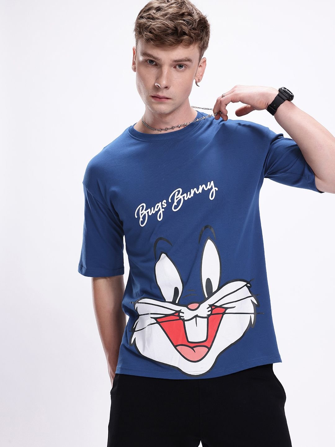 Kook N Keech Men Bugs Bunny Printed Drop-Shoulder Sleeves Oversized Pure Cotton T-shirt