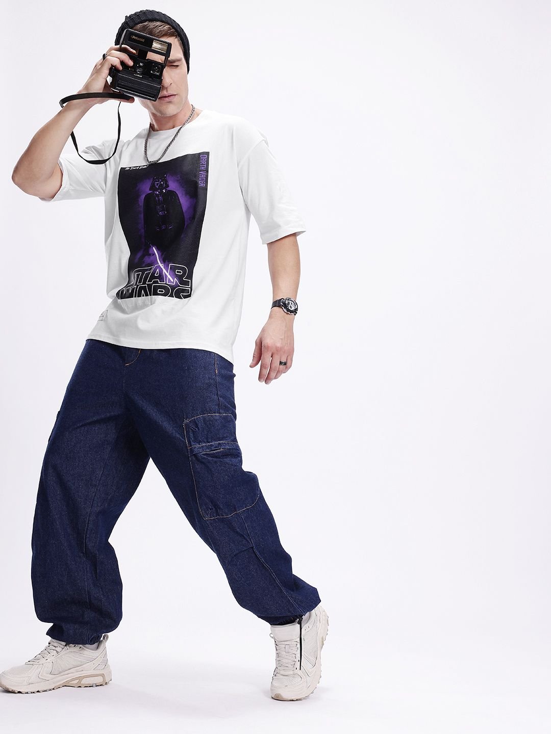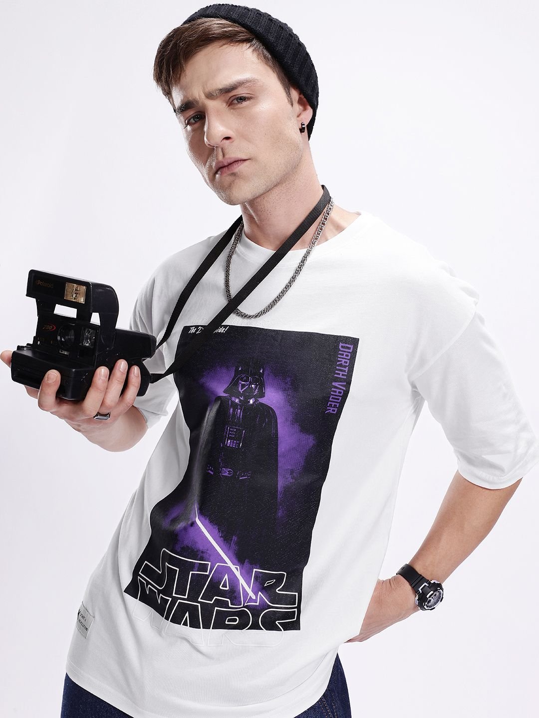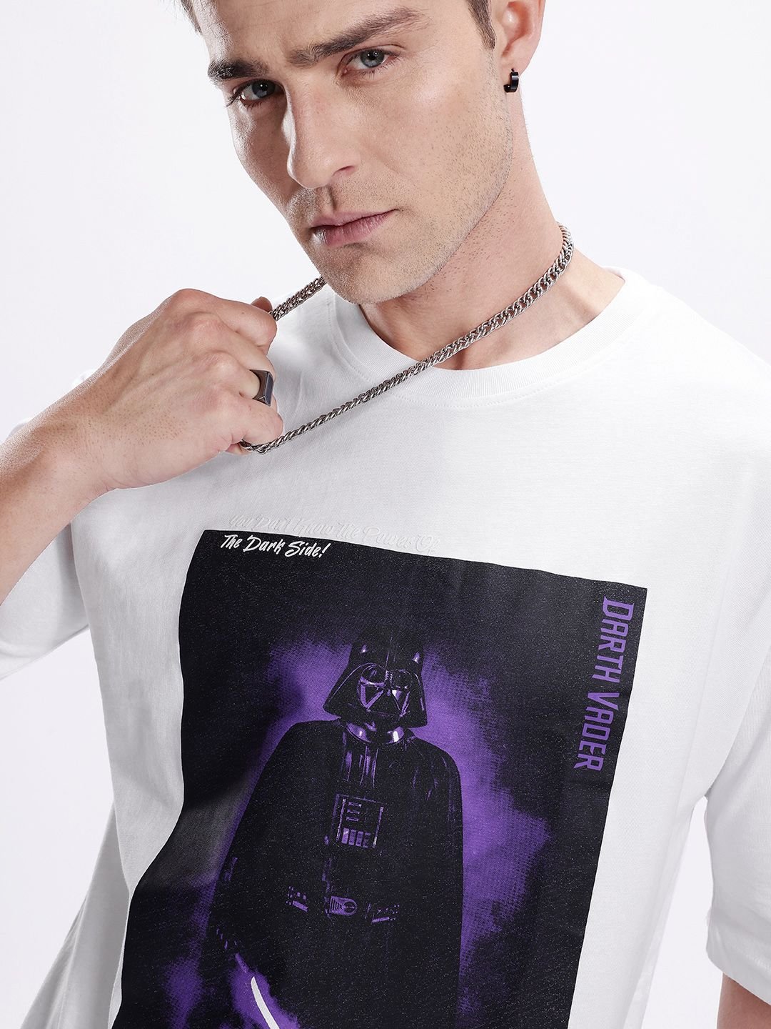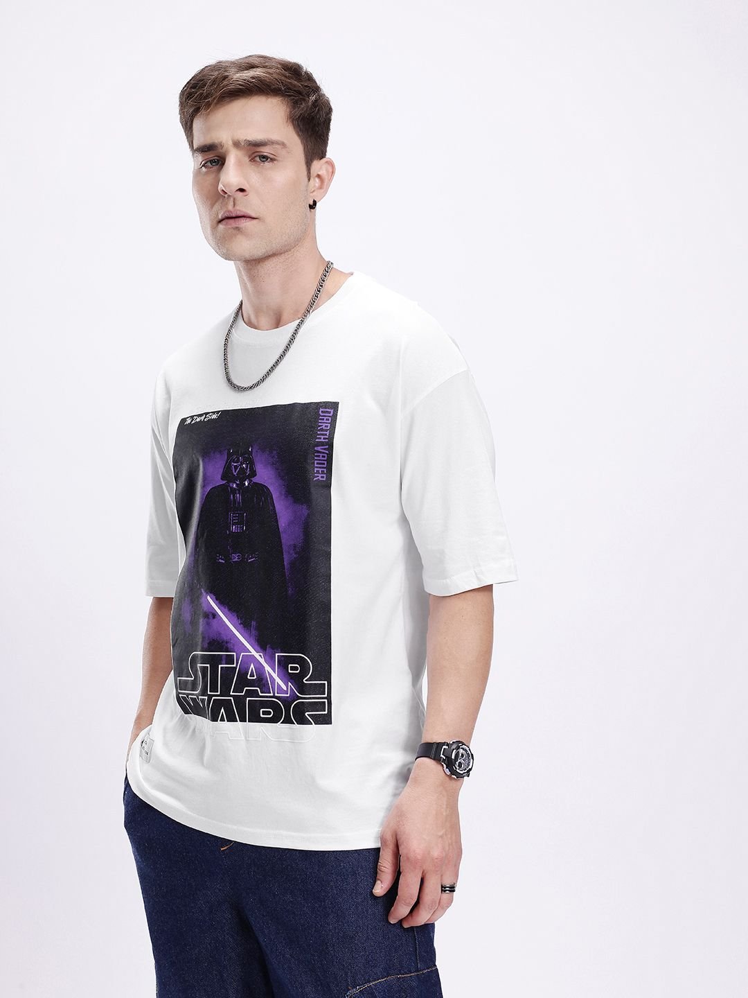 Kook N Keech Men Darth Vader Printed Drop-Shoulder Sleeves Oversized Pure Cotton T-shirt