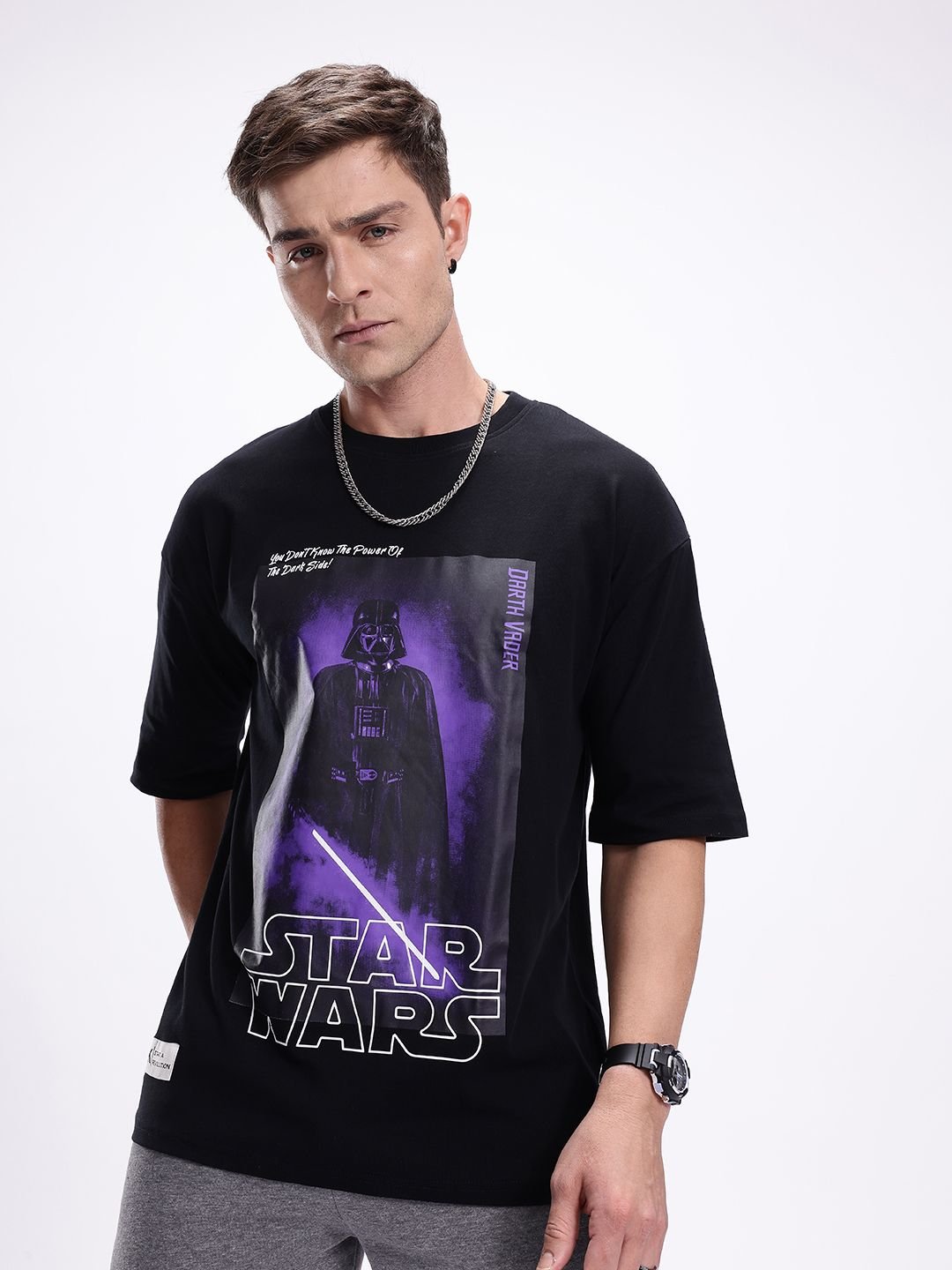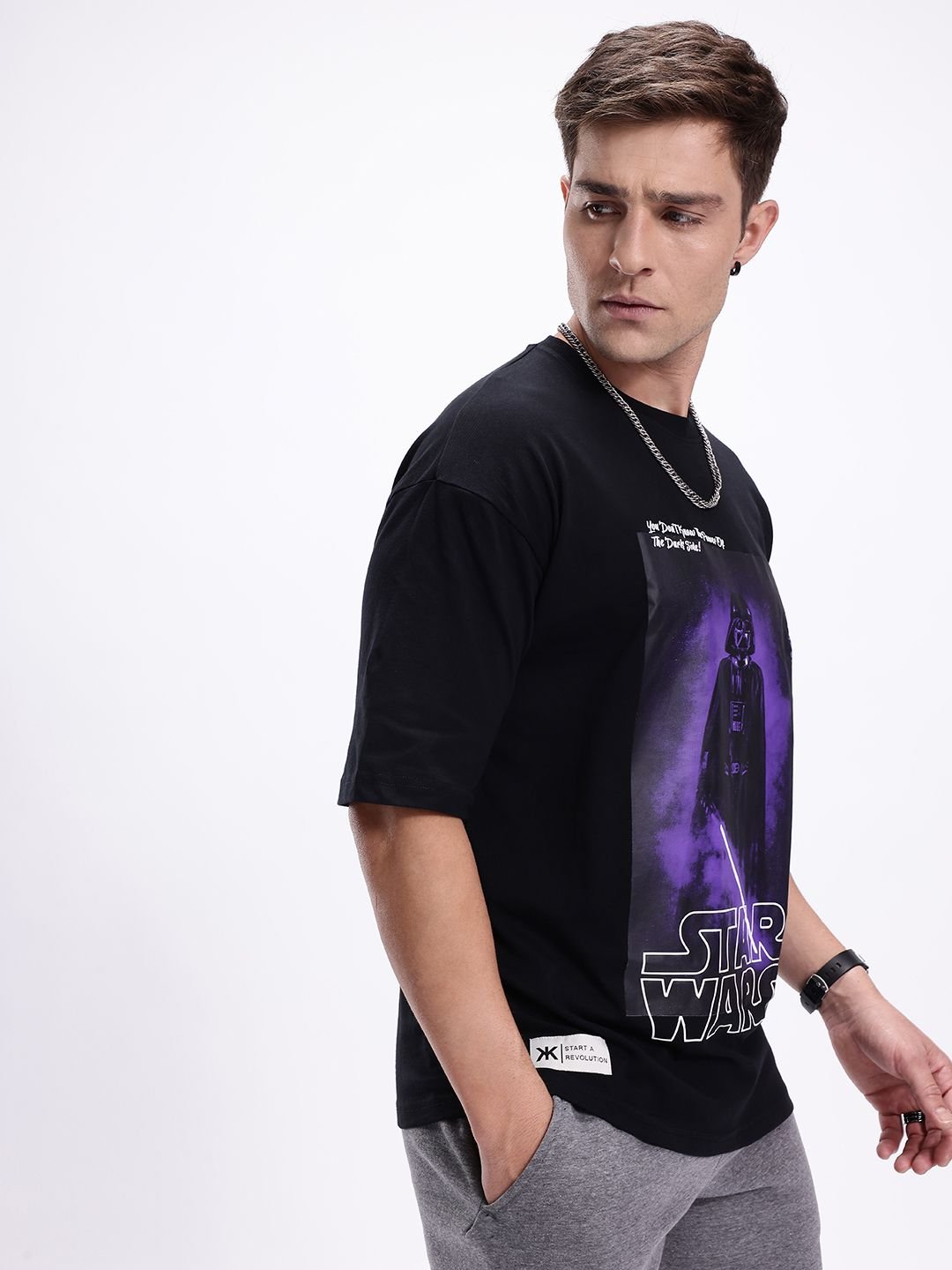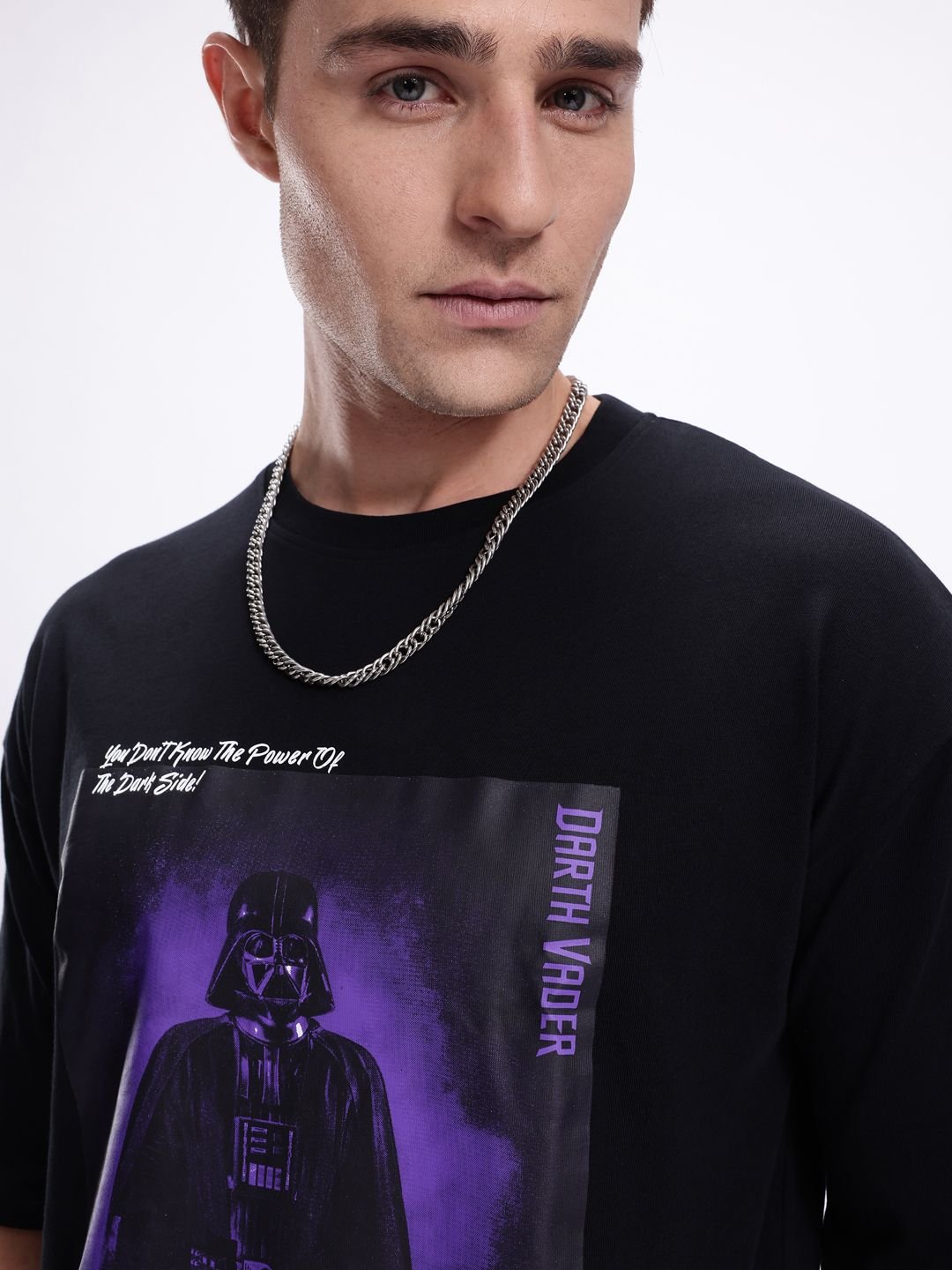 Kook N Keech Men Darth Vader Printed Drop-Shoulder Sleeves Oversized Pure Cotton T-shirt