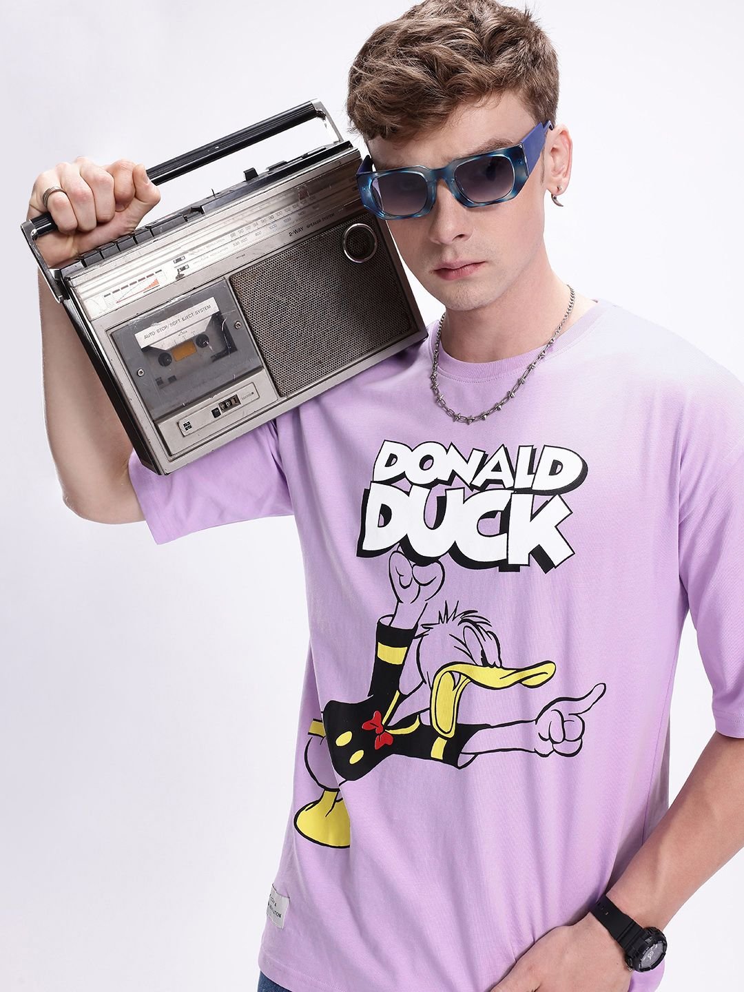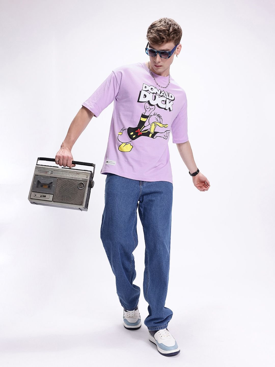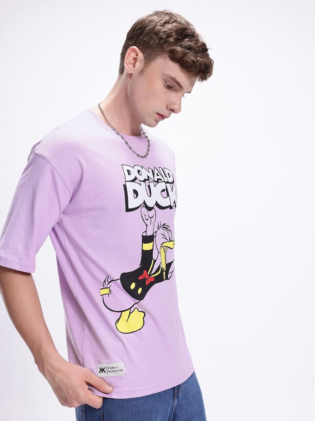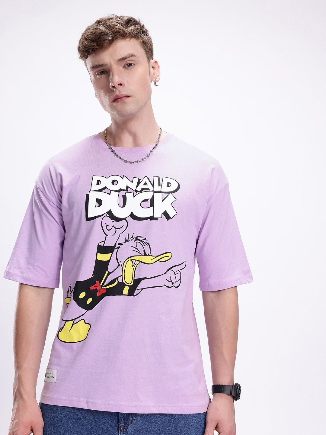 Kook N Keech Men Donald Duck Printed Drop-Shoulder Sleeves Oversized Pure Cotton T-shirt