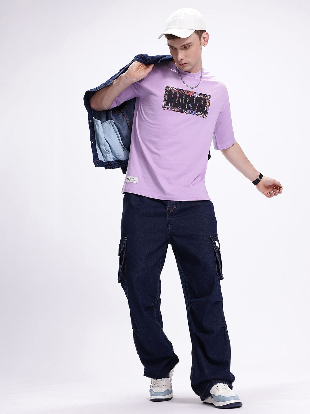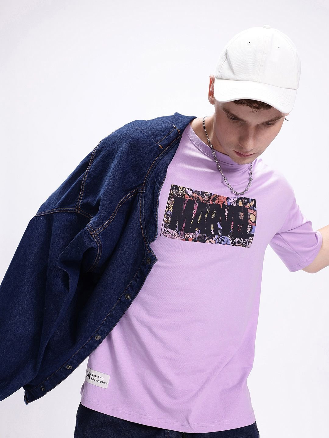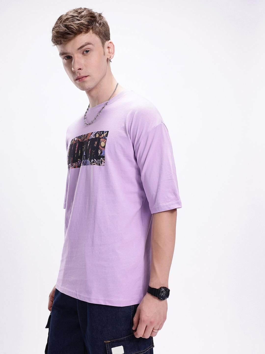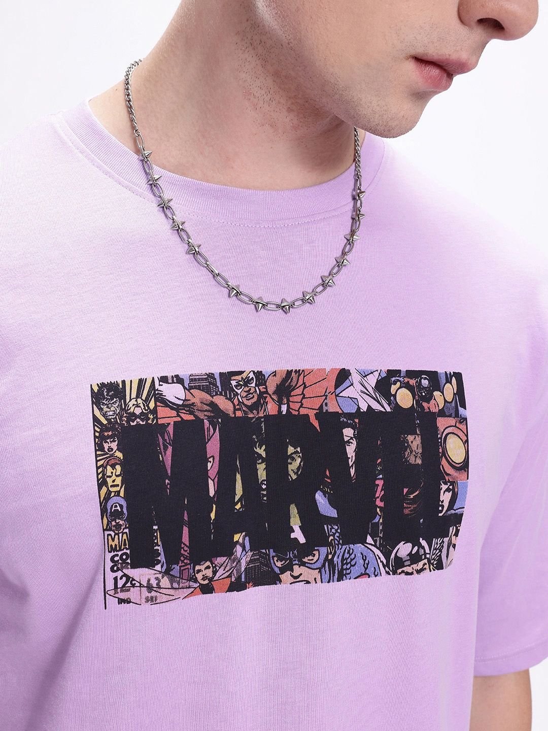 Kook N Keech Men Marvel Printed Drop-Shoulder Sleeves Oversized Pure Cotton T-shirt