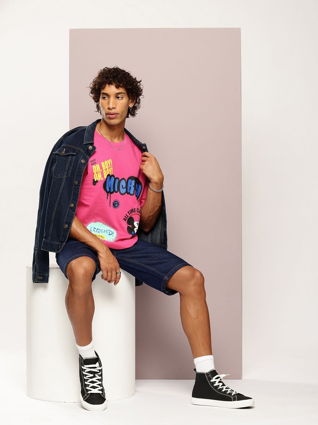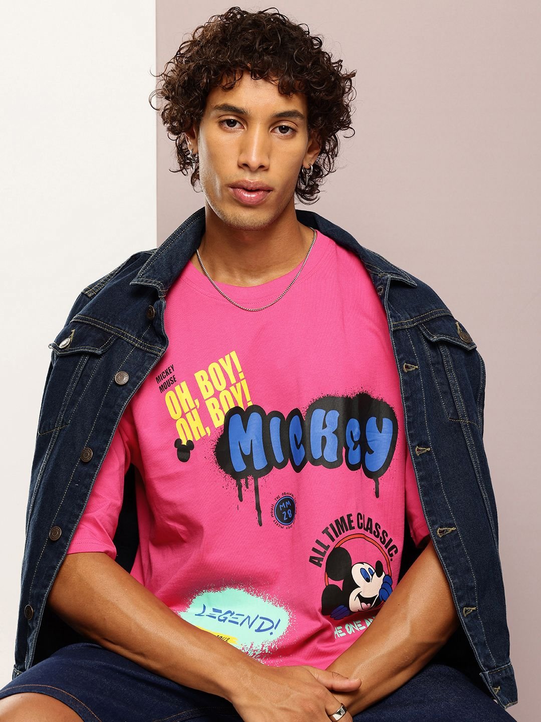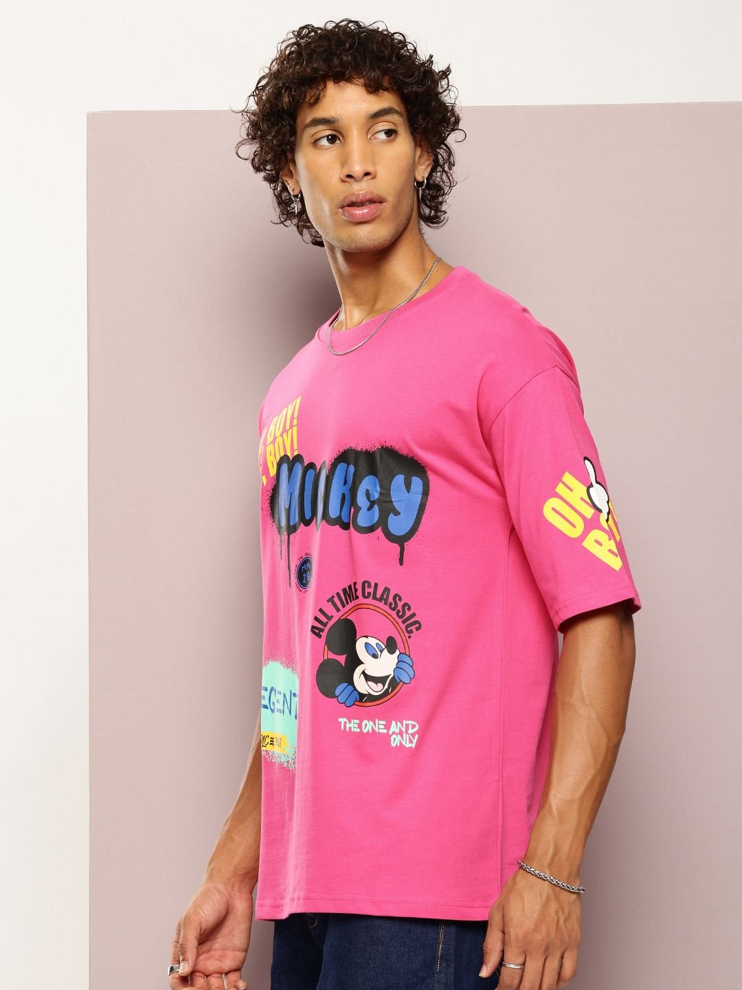 Kook N Keech Men Mickey Mouse Printed Drop-Shoulder Sleeves Oversized Pure Cotton T-shirt