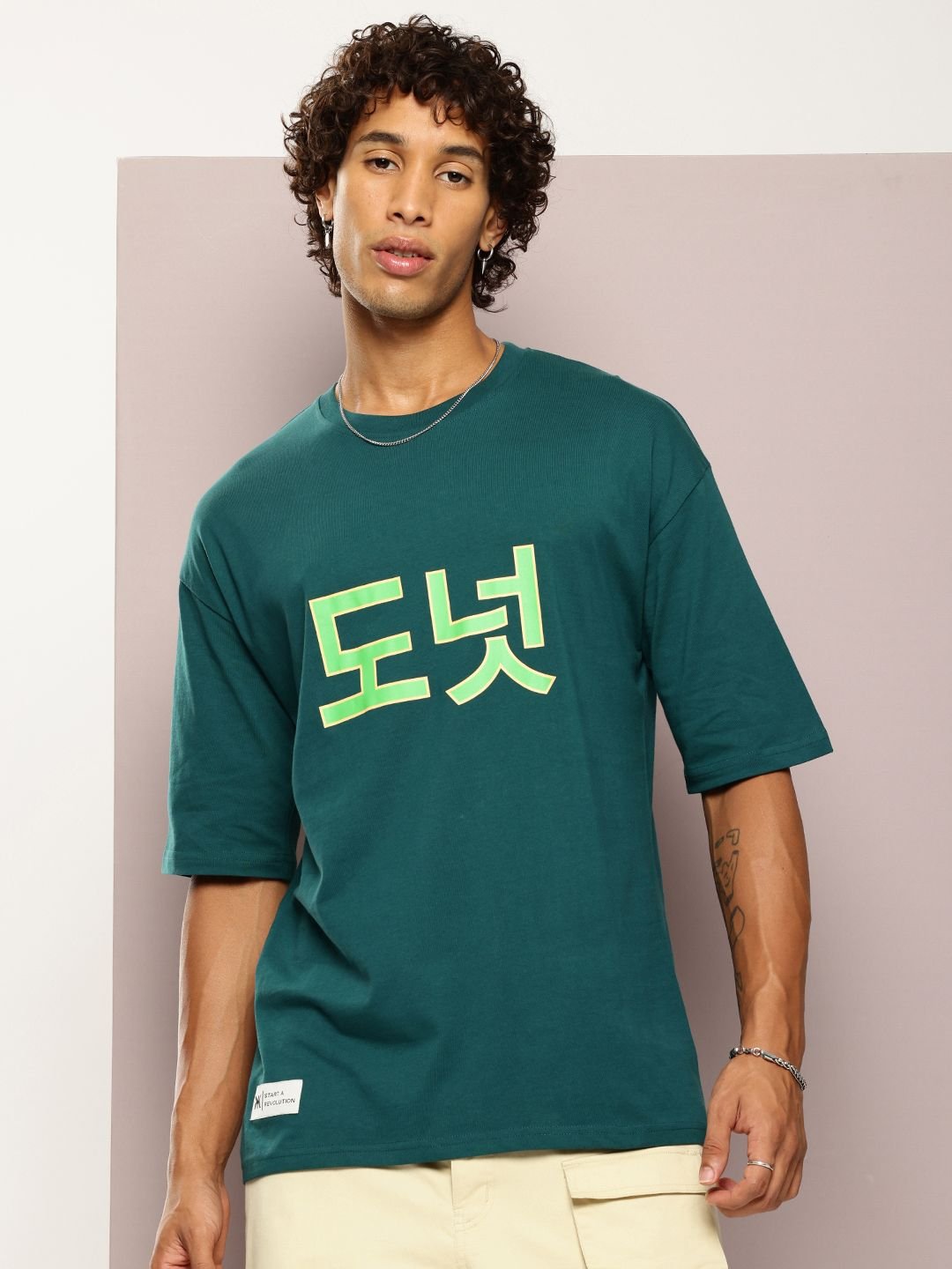 Kook N Keech Men Printed Drop-Shoulder Sleeves Oversized Pure Cotton T-shirt
