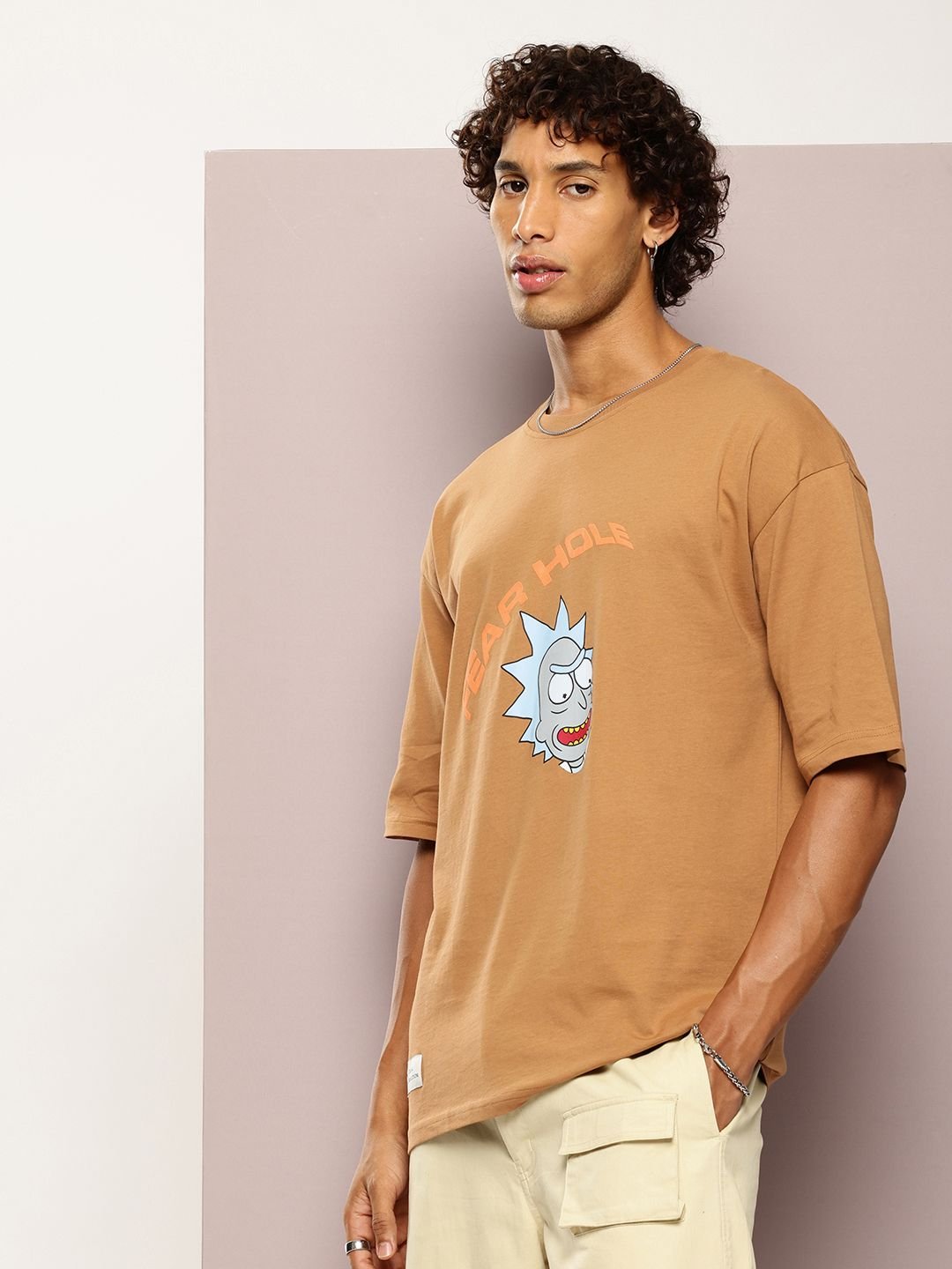 Kook N Keech Men Ricky & Morty Printed Drop-Shoulder Sleeves Oversized Pure Cotton T-shirt