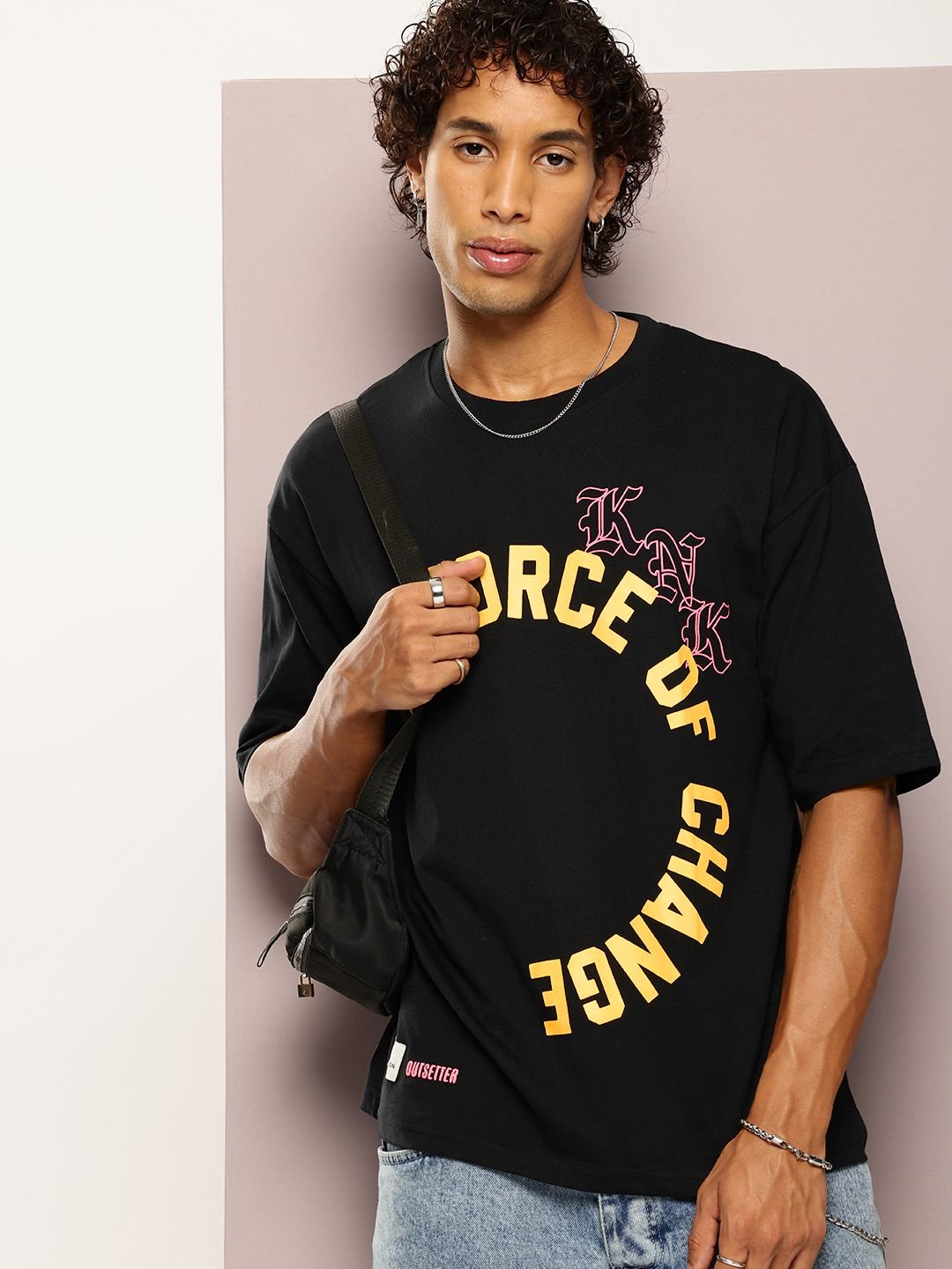Kook N Keech Men Typography Printed Drop-Shoulder Sleeves Oversized Pure Cotton T-shirt